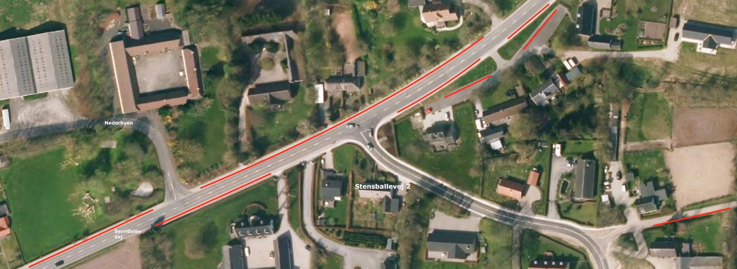 Der er mulighed for at parkere på de områder udpeget på kortet nedenunder med rødt. Vi frabeder os parkering i indkørslen for at dagens hjælpere kan komme nemt til og fra.